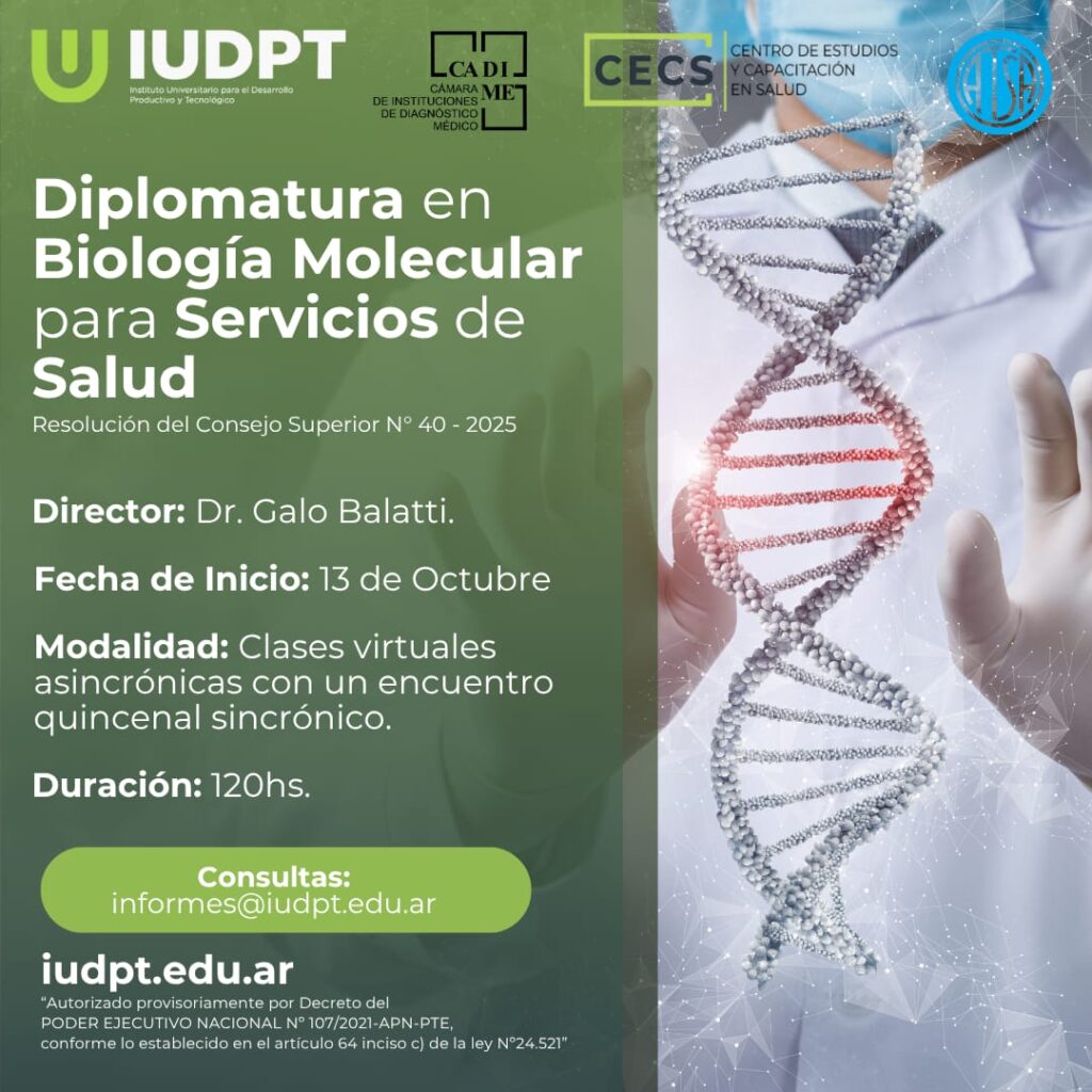 La biología molecular es hoy parte esencial del trabajo en laboratorios de salud. Esta diplomatura está pensada para técnicos de laboratorio interesados en aprender los fundamentos teóricos y, al mismo tiempo, entrenarse en laboratorios prácticos con las principales técnicas moleculares. No se requiere formación universitaria previa.