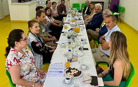 El Dr. Jorge Menehem, Presidente de Fundación Garraham y la Dra. Silvia Kassab, Directora Ejecutiva, recibieron al Sr. Guillermo Gómez Galizia, Presidente de Fundación DPT y CADIME, al Sr. Rector del IUDPT, Dr. Mariano Alvarez y al Dr. Atilio Giordano, Fundador del IUDPT, en las instalaciones Casa Garrahan.