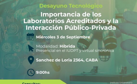 21 de Agosto / 2025 📢 DESAYUNO TECNOLÓGICO El Instituto Universitario IUDPT; la Cámara Argentina de Laboratorios Independientes Bromatológicos, Ambientales y Afines (CALIBA); la Cámara Argentina de Certificadoras (CACER) y el Organismo Argentino de Acreditación (OAA) te invitamos a participar de la charla: «Importancia de los Laboratorios Acreditados y la